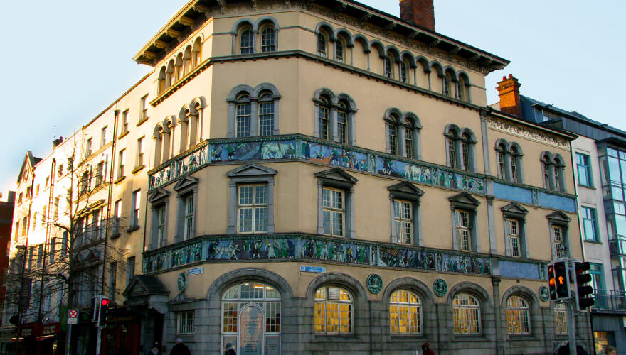 Pat Liddy, knows his Dublin oddities and is a good man to tell us more. “Sunlight Chambers? It’s is one of my favourite buildings in Dublin”, he says. “It’s also one of the most passed-by buildings in Dublin, which is a shame because what people should be doing is looking up… They should give themselves a few minutes to absorb the beauty of the sculptures and the story they tell.”